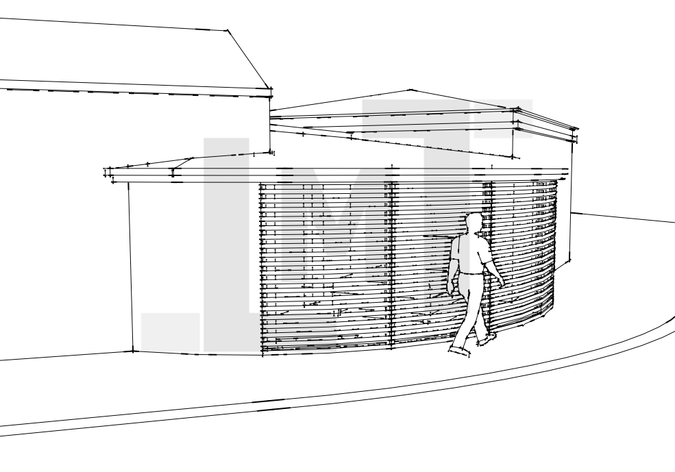 Implanté à l’extrémité nord de la parcelle, l’agrandissement relie deux façades existantes par un arc de cercle, redéfinissant la fluidité des circulations intérieures et extérieures.