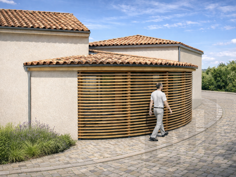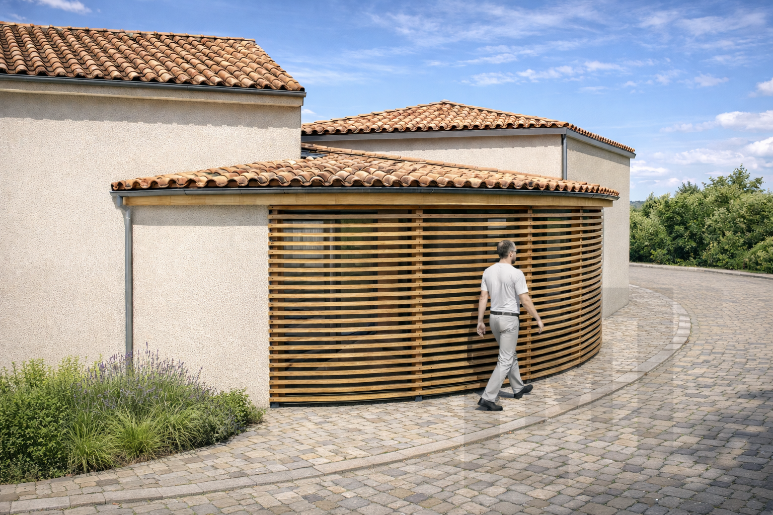 L’extension adopte une forme circulaire, conçue comme une exploration architecturale visant à repenser la relation entre espace habitable, intimité et environnement extérieur, dans le contexte climatique et paysager du sud de la France.