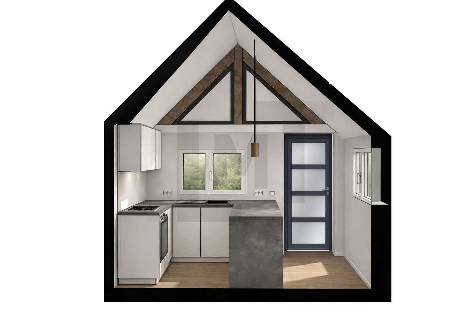 L’accès à la maison se faisant directement par la cuisine, le projet visait à créer une transition claire entre l’entrée et l’espace de préparation, tout en optimisant les usages existants.