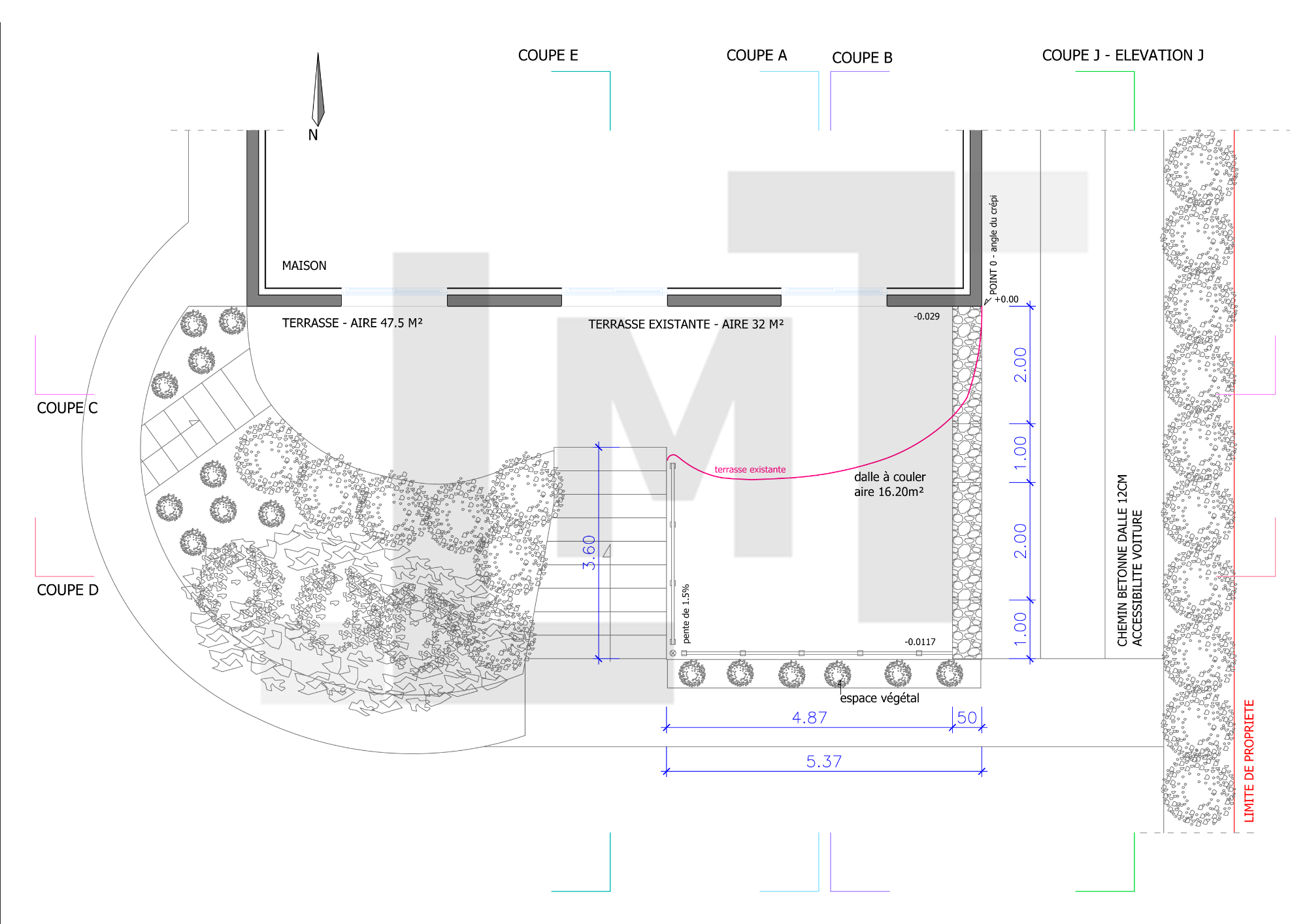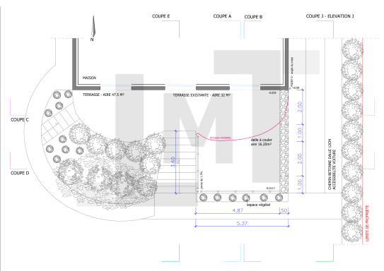• Conception de l’extension et de la nouvelle organisation de la terrasse