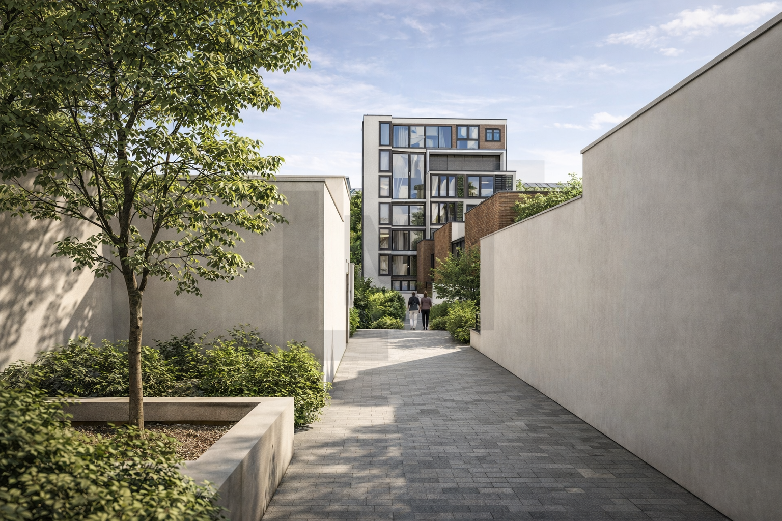 Cette approche vise à développer une maison de ville offrant des vues maîtrisées, favorisant l’intimité tout en garantissant un apport généreux de lumière naturelle pour un habitat confortable et viable.