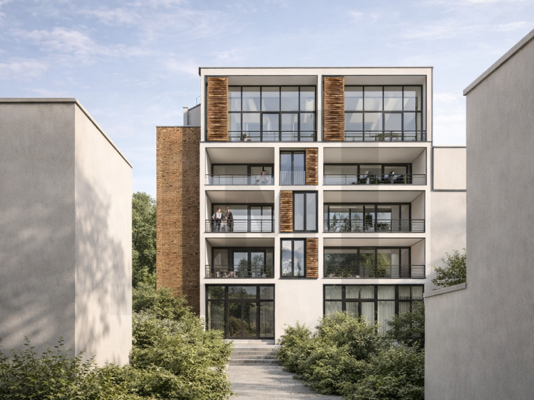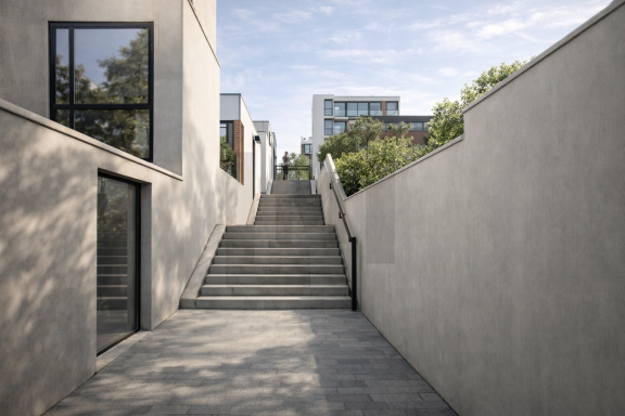 La réflexion architecturale s’est appuyée sur une rationalisation des formes et des usages, avec une séparation claire entre la desserte verticale, isolée, et une desserte horizontale spécifique générant une organisation lisible des logements.