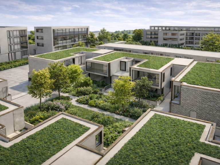 Le principe constructif repose sur un dispositif en R+1 intégrant des porte-à-faux maîtrisés, conçus de manière à ne pas générer de conflits d’usage entre les logements superposés.