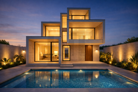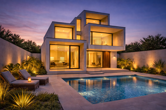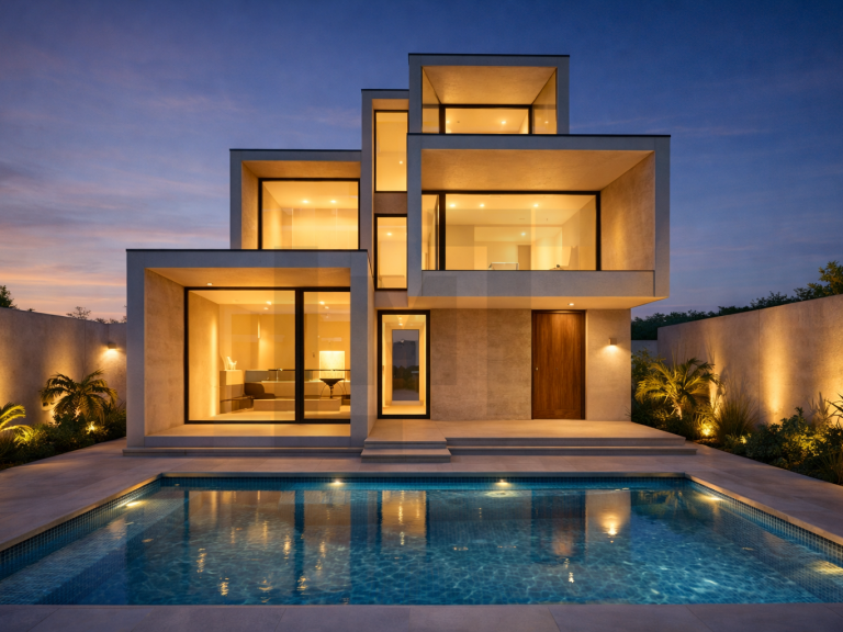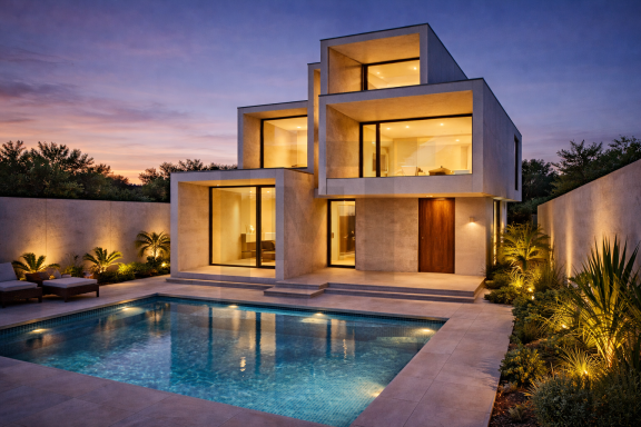 Implantée sur une parcelle de faible superficie, la maison développe une relation étroite entre bâti et terrain, nécessitant un équilibre précis afin que l’un n’empiète pas excessivement sur l’autre.
